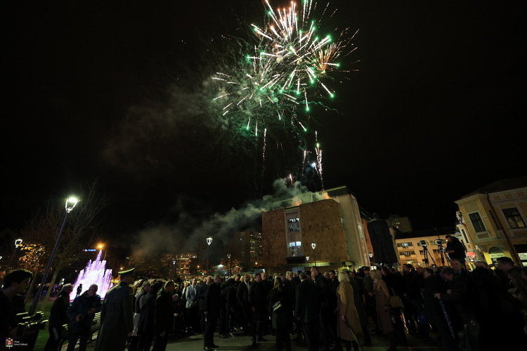 Фанфарама, богатим програмом у коме је учествовало више од стотину извођача, музичара, глумаца, уметника, доајен српског глумишта Петар Божовић и ватрометом у присуству великог броја Крагујевчана свечано је отворен Трг Радомира Путника.