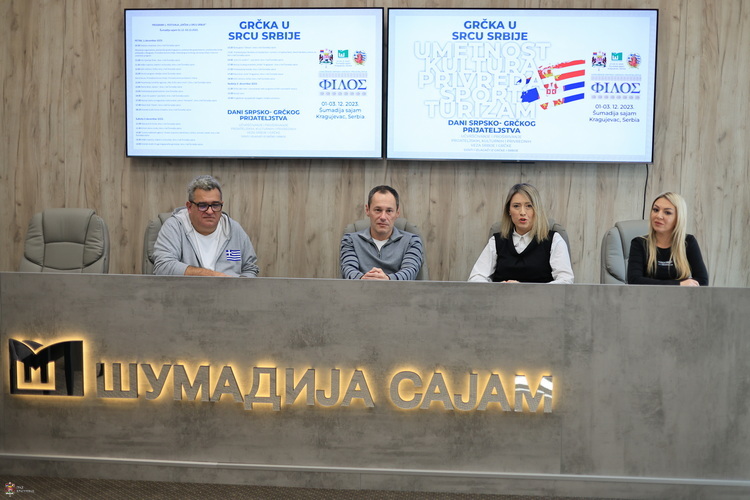 Удружење српско-грчког пријатељства „Филос“ као иницијатор братимљења града Крагујевца и града Катерини, а уз подршку Града и Шумадија сајма, организује фестивал „Грчка у срцу Србије“. Око сто излагача из Грчке представиће се на Фестивалу. На конференцији за новинаре најављен је програм Фестивала на којој су присуствовали Данка Андоновски, чланица Комисије за привреду, развој, инвестиције, урбанизам и планирање Привременог органа града Крагујевца, Александар Штајн, директор Шумадија сајма и Драган Стојановић, из Удружења „Филос“.