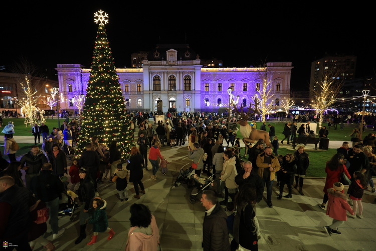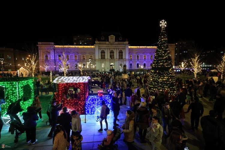 Новогодишњи украси, ирваси са Деда Мразовим кочијама, светлуцави возић, јелка жеља, дрвене кућице, џинџер бред хаус, светлеће новогодишње инсталације различитих боја и облика, Крагујевчане су увели у чаробно празнично расположење.