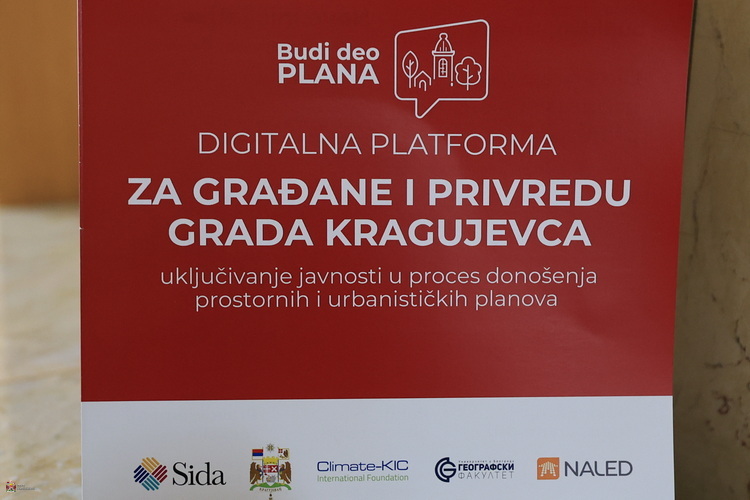 Платформа путем које ће грађани, привредни субјекти и сва заинтересована јавност бити у могућности да учествују у изради и измени локалних просторних и урбанистичких планова на територији града Крагујевца данас је презентована у Скупштинској сали зграде Градске управе. Ова платформа развијена је као резултат сарадње Града Крагујевца и НАЛЕД-а у оквиру пројекта „Глас грађана у урбанистичком планирању“ који финансира Силп фонд Шведске агенције за међународну сарадњу (Сида), а коме се као партнер прикључио и Географски факултет.