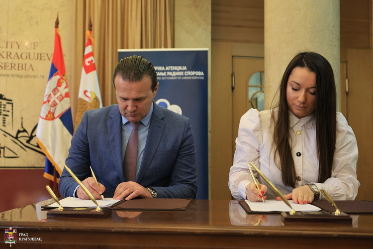 Канцеларија локалног омбудсмана града Крагујевца и Републичка агенција за мирно решавање радних спорова потписали су данас Споразум о сарадњи. Споразум су потписали Јелена Миливојевић, локални омбудсман града Крагујевца и Ивица Лазовић директор Републичке агенције за мирно решавање радних спорова. Потписивању су присуствовали и Мирослав Петрашиновић, члан Привременог органа Крагујевца и Гордана Дамњановић, члан комисије Привременог органа.