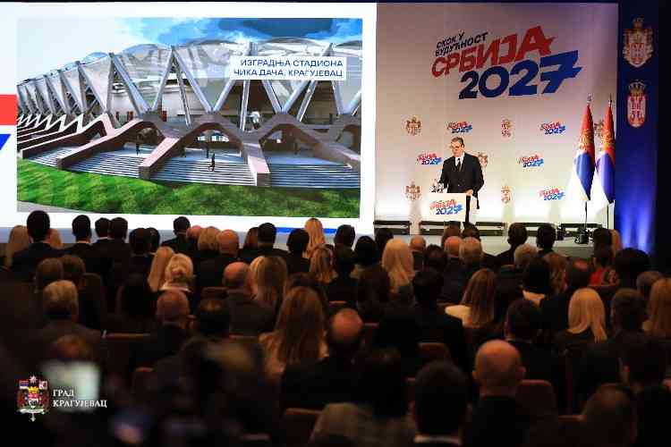 Северена обилазница, Тренинг центар Крагујевац, матични објекат Градске тржнице, Универзитетски клинички центар, Стадион Чика Дача, брза саобраћајница Крагујевац - Мрчајевци, железничка пруга Цветојевац – Собовица, Зграда ФИЛУМ-а, Научно технолошки парк у Мајнд парку, Радна зона Цветојевац, Стелантис – фабрика за производњу електричних аутомобила, Иновациони дистрикт део су пројеката у Крагујевцу, чију ће реализацију у наредне четири године помоћи Република Србија, а у оквиру програма свеобухватног и интегралног развоја земље до 2027.године, који је данас у Палати Србије представио председник Србије Александар Вучић.