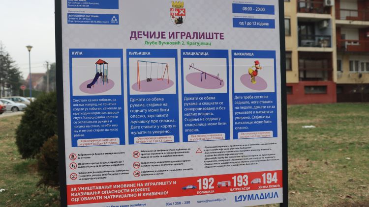 Радове на изградњи новог игралишта у Улици Љубе Вучковића екипе предузећа Шумадија доо отпочеле су пре празника и ево сада је комплетно завршено, каже Јасмина Михајловић, директорка. Игралиште са справама за децу узраста до 14 година због њихове безбедности јер је у близини паркинга, је ограђено, истиче Михајловић.