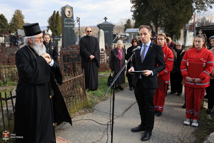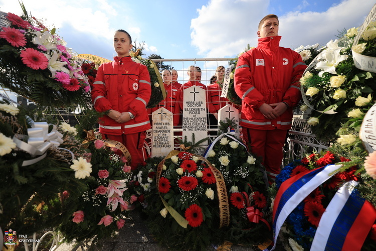 После пријема у градској кући, крај споменика др Елизабет Рос и чланица британске санитетске мисије Мејбел Дирмер и Лорне Ферис на Варошком гробљу, Његово преосвештенство епископ шумадијски господин Јован са свештенством шумадијске епархије служио је помен, а венце крај споменика су положиле делегације амбасада и представници установа и институција.
