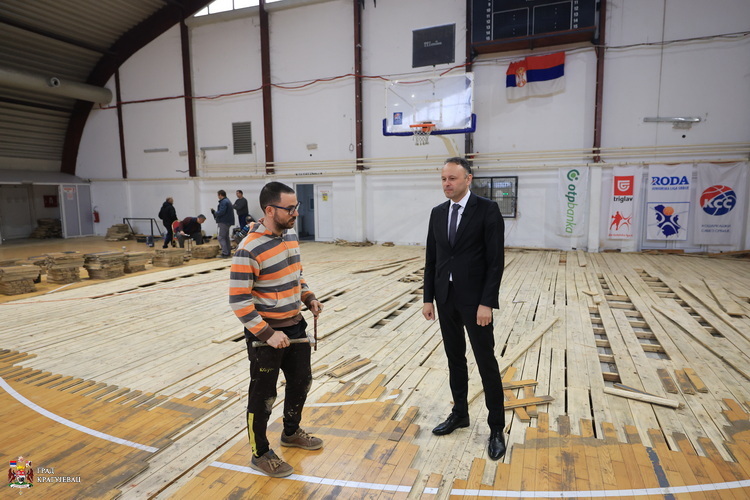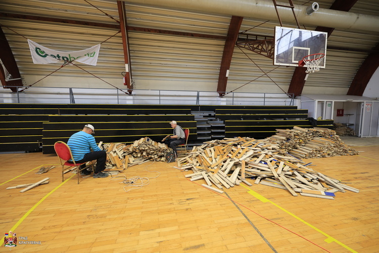 Спортска хала ’’Гордана Гоца Богојевић’’ један је од најважнијих градских спортских објеката и представља срце спорта у Крагујевцу. Прошлогодишње поплаве потпуно су уништиле паркет и било је потребно да што пре отпочнемо са реконструкцијом како би се овај важан спортски капацитет вратио у употребу, каже Предраг Стевовић, члан Привременог органа града Крагујевца. Трудићемо се да се радови у најкраћем року заврше, додао је он и истакао да је хала у Великом парку угостила бројна спортска такмичења и друге манифестације поред свакодневних тренажних активности спортских организација и клубова као и рекреативаца. За санацију паркета спортског објекта опредељена су средства у висини од преко два милиона динара, од којих је 1,2 милиона динара из буџетских резерви града. Део средстава за материјал обезбеђен је из донација а део је од осигуравајуће куће, рекао је Стевовић.