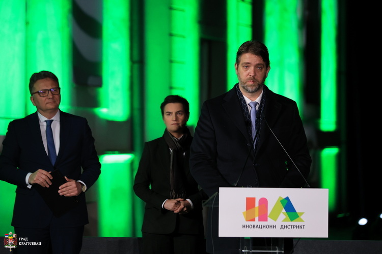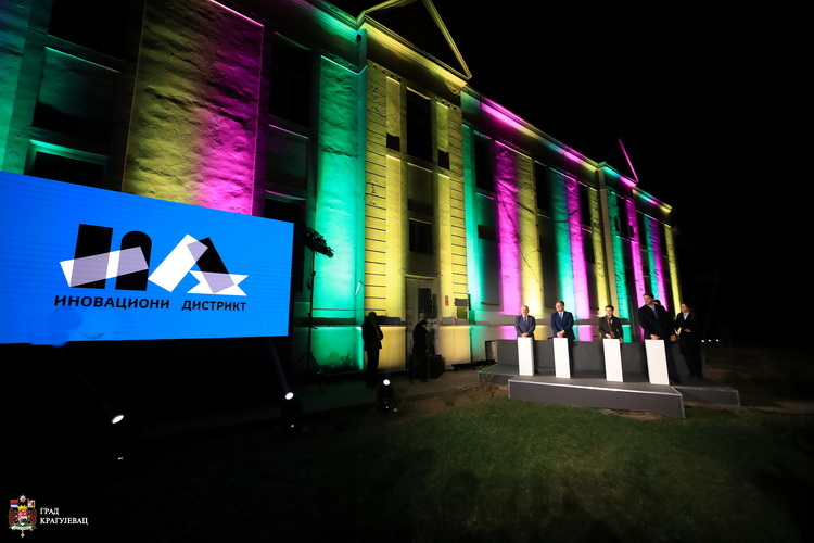Притиском на тастере, председница Владе Републике Србије Ана Брнабић, министар информисања и телекомуникација Михаило Јовановић, в.д. директора Канцеларије за ИТ и еУправу, Милан Латиновић и председник Привременог органа Никола Дашић означили су почетак изградње Иновационог дистрикта у Крагујевцу.
