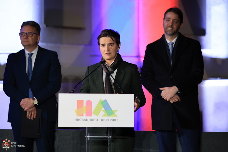 Са намером да искористимо све потенцијале и снаге Србије којa је пре свега у младим људима, почетак изградње Иновационог дистрикта је резултат озбиљног, одговорног и напорног рада, рекла је премијерка Ана Брнабић. Подсетивши на ток изградње Државног дата центра и његов значај за безбедно чување података, не само грађана Србије и безбедносних служби, већ и компанија попут Oracle, IBM, Тошиба, Huawei и других, премијерка је рекла „да кад урадите нешто добро аутоматски тај пројекат отвара врата да урадите нешто даље и тај успех јачате“. За две године Крагујевац ће бити један потпуно другачији град, пре свега за младе људе и за Универзитет. Честитајући што се на Фајненшел тајмс листи, у категорији средњих градова најбољих инвестиционих дестинација у 2024. години нашао међу првих десет градова, председница Владе Србије изразила је наду да ће за четири године, када буду реализовани сви пројекти предвиђени програмом „Скок у будућност – Србија 2027“, Крагујевац да победи.