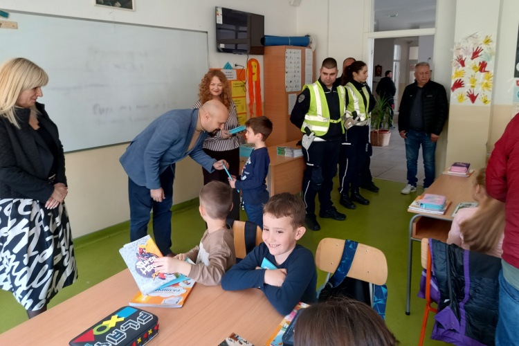 Едукативне приручнике прилагођене најмлађима са правилима о понашању у саобраћају ученицима је уручио Мирослав Петрашиновић, члан Привременог органа града Крагујевца. Овој активности присуствовали су представници Одељења саобраћајне полиције ПУ Крагујевац и Градске управе за комуналне послове.
