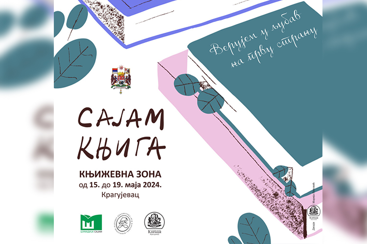 У организацији Народне библиотеке ''Вук Караџић'', Установе културе ''Кораци'' и Шумадија сајма под покровитељством Града Крагујевца од 15. до 19. маја одржаће се Сајам књига. Отварање 15. по реду сајамске манифестације књига ''Књижевна зона'' ове године са темом ''Верујем у љубав на прву страну'' заказано је за среду 15. маја у 18 сати на Тргу војводе Радомира Путника, најављено је на конференцији за медије одржаној у Прес центру Шумадија сајма.