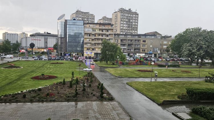 Јак ветар, киша и град изазвали су локалне поплаве на улицима Крагујевца јер кишна канализација није могла да прими велику количину падавина.