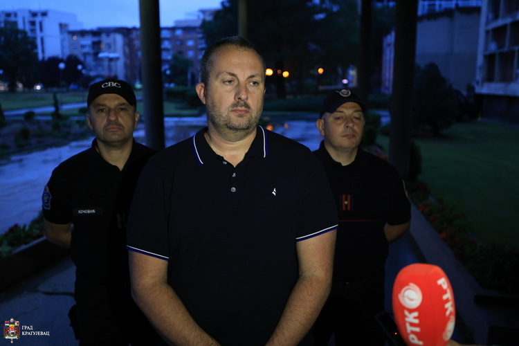 Сва механизација градских јавно комуналних предузећа су на терену а екипе ЈКП „Водовод и канализација“ имали су 27 интервенција јер је због велике количине воде која је пала у јако кратком периоду дошло до изливања кишне канализације у нижим деловима града а нарочито код Роде и Прве крагујевачке гимназије, рекао је Дејан Ружић, заменик градоначелника Крагујевца. Проблема нема са водоснабдевањем и снабдевањем електричном енергијом, све екипе су и даље на терену, нема угрожених људских живота, осим велике штете настале услед града, истакао је Ружић.