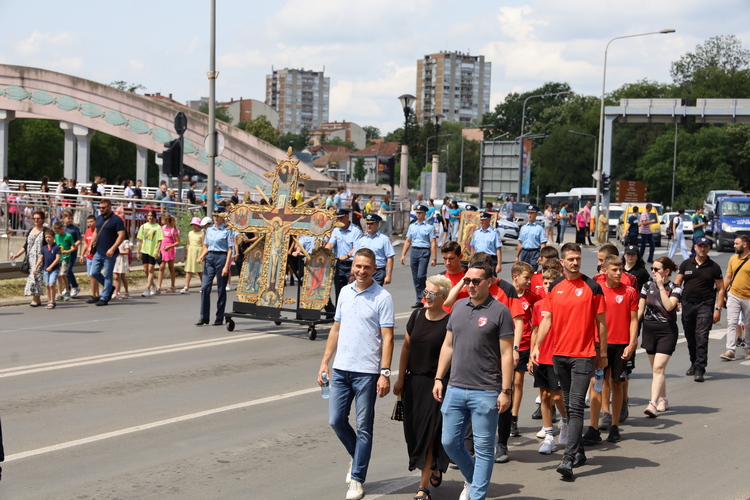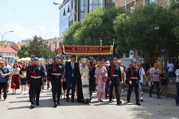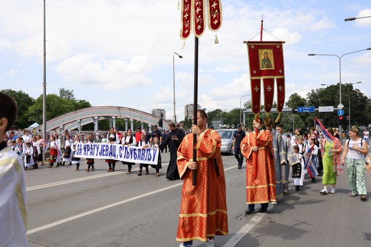 Након служења Свете архијерејске литургије у порти Старе цркве узнесена је молитва за цео град Крагујевац, а верници предвођени митрополитом шумадијским Јованом и свештенством Епархије шумадијске, кренули су из порте Старе цркве градским улицама.