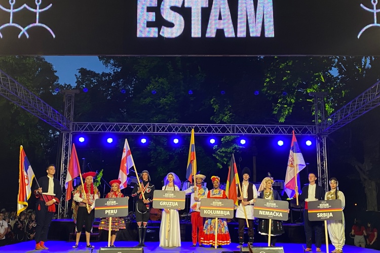 Међународни фестивал фолклора ЕСТАМ отворен је на сцени у Великом парку наступом Академског фолклорног ансамбла СКЦ-а ''Светозар Марковић'', домаћина фестивала. Други по реду фестивал у Крагујевцу ће трајати до 1. августа, а публика је синоћ уживала у музици, плесу, раскошним костимима ансамбала из Колумбије, Перуа, Грузије, Немачке, Грчке и Србије. Уметници фестивала наступаће на сценама у Аранђеловцу, Тополи и на Мећавнику.