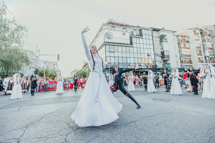Пре званичног отварања у Великом парку, учесници ЕСТАМ-а окупили су се на Тргу војводе Радомира Путника, сликали се са грађанима и главном улицом упутили према Великом парку. У дефилеу кроз град плесачи су застајали плешући своје традиционалне игре.
