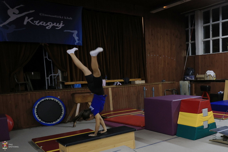 Гимнастички клуб „Крагуј“ постоји већ 17 година и тренутно има око 120 чланова распоређених од најмлађих група до оних такмичарских. Пре две године смо, каже Слађана Ковачевић, председник клуба, тренер и судија, добили простор за тренирање у Трговинско-угоститељској школи „Тоза Драговић“ који могу да користе свакодневно. То пуно значи, као и подршка Града Крагујевца без које не би могли да набаве гимнастичарску опрему која је јако скупа. Групе раде по Б и Ц програму, а сада спремају и групу по А програму. У Б програму, истиче Ковачевић, имају сјајне резултате, а њихова чланица Марија Ђорђевић освајач је златних медаља на бројним такмичењима.