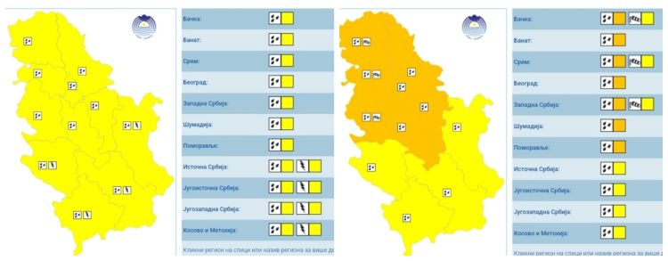 Наранџасти метео аларм се предвиђа у суботу увече, 14.09.2024.године и у току ноћи ка недељи (14/15.09.), као и у недељу (15.09.) на подручју Бачког, Банатског, Сремског, Колубарског, Мачванског, Шумадијског, Подунавског, Поморавског, и Браничевског округа као и на територији Београда, када се очекује већа количина падавина, од 20 до 40 mm за период од 24-36 х, а на подручју Браничевског округа локално и преко 40 mm.