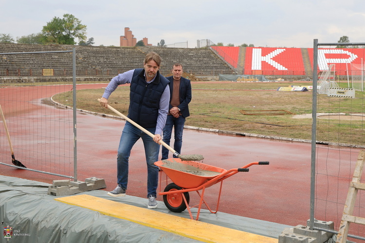 Градоначелник Крагујевца Никола Дашић и генерални директор Фудбалског клуба Раднички 1923, Игор Конатар, обишли су завршне радове на реконструкцији стадиона "Чика Дача".