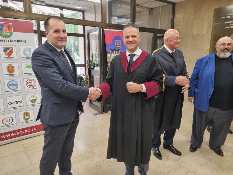 Велика је част да промовисати академика Руске академија наука и научника проф. Александра Гинцбурга у почасног доктора Универзитета у Крагујевцу, рекао је в.д. ректора Универзитета у Крагујевцу проф. др Владимир Ранковић, захваливши се декану проф. др Владимиру Јаковљевићу, на предлогу и могућности да угостимо реномираног научника чији се допринос мери стотинама хиљада спашених живота.