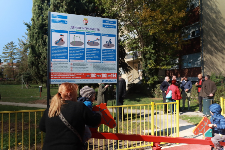 У сарадњи са предузећем Шумадија доо успели смо да игралиште буде завршено у предвиђеном року. Вредност радова је око милион динара, каже Предраг Стевовић, члан Градског већа за спорт истакавши да материјално улагање има много већу вредност када су и родитељи у деца задовољни јер имају безбедно место за игру, спортске активности за правилан и здрав развој малишана. Он је скренуо пажњу и апеловао на суграђане да чувају свако игралиште, наводећи да је игралиште у Војвођанској било на мети вандала пре него што је предато на игру најмлађима. Будући да је ово игралиште веома посећено и због локације и због броја становника ове месне заједнице, надлежне службе ће реаговати а сигуран сам и савесни грађани пријављивати свако неогдоворно понашање. Наставићемо да радимо истом динамиком на спортској инфраструктури и до краја године отворићемо још игралишта за наше малишане, поручио је Стевовић, члан Градског већа.