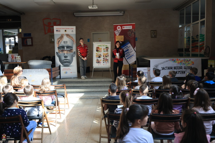 Радионица коју су данас одржали волонтери Црвеног крста осмишљена је тако што води ученике кроз причу главних јунака, Мише и Маше који их уче о томе да ли треба да отварају врата непознатим особама, да ли треба да причају са непознатим људима на интернету, на путу од куће до школе и др.