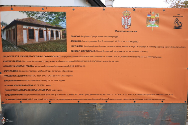 Радови на санацији зграде Старе Скупштине у порти Старе цркве приводе се крају, а предвиђено је да буду готови до краја месеца. Укупна вредност радова који обухватају санацију фасаде и партерно уређење објекта је 11,1 милион динара, од чега је око 6,8 милиона обезбеђено из градског буџета, док остатак финансира Министарство културе.