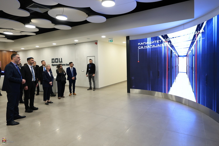 Осим представљања капацитета Државног дата центра, казао је помоћник директора Канцеларије за информационе технологије и електронску управу задужен за Државни дата центар, Бобан Михаиловић, са министром Кархијем смо разговарали и о будућој платформи за вештачку интелигенцију и изградњи Иновационог дистрикта као новој фази проширења Државног дата центра.