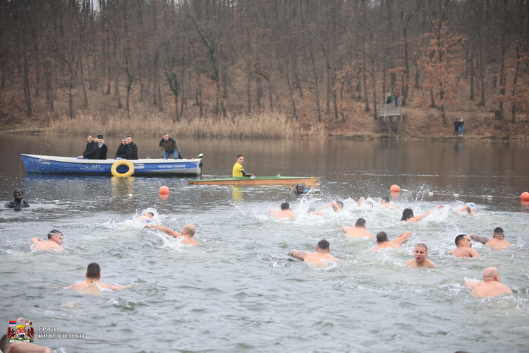 Уз благослов Његовог високопреосвештенства митрополита шумадијског господина Јована и свештенства Епархије, у присуству градоначелника Николе Дашића, председника Скупштине града Ивице Момчиловића, заменика градоначелника Дејана Ружића, градских већника, представника градских и републичких институција и великог броја посетилаца, са хладном језерском водом, храбро су се суочила 124 пливача. Међу учесницима је било 10 малолетника и седам жена, најстарији има 67 година, а најмлађа је осмогодишња Николина Прокић.