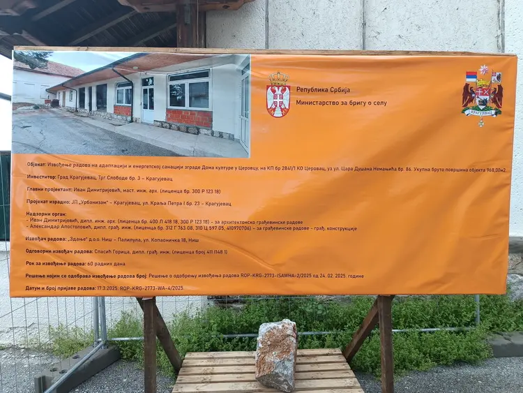 У селу Церовац у току су завршни радови на адаптацији и уређењу Дома културе које Град Крагујевац изводи уз помоћ средстава добијених на конкурсу Министарства за бригу о селу. Радове су данас обишли др Снежана Живановић Катић, чланица Градског већа за равномерни и одрживи развој села и града и Александар Милошевић, члан Градског већа за инвестиције и управљање пројектима.