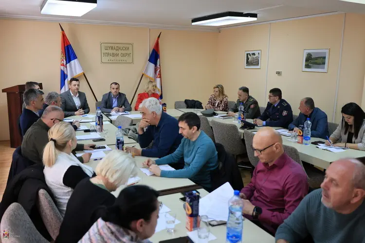 Извештаји о извршеним припремама за предстојећу противградну сезону, о припремама за спровођење превентивних и оперативних мера заштите од поплава, клизишта, ерозија и одрона, стању водних објеката за одбрану од поплава на водама I и II реда на подручју Шумадијског округа, разматрање извештаја о спремности капацитета јединица локалних самоуправа Управног округа за ефикасан одговор на појаву екстремних услова – поплава, олуја са градом, пожара на отвореном, биле су теме прве редовне седнице Окружног штаба за ванредне ситуације Шумадијског управног округа.
